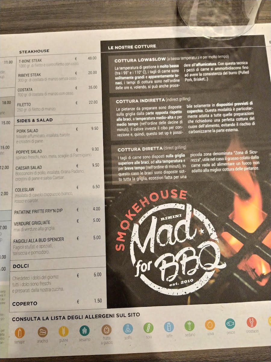 Introducing the menu at SmokeHouse by MAD for BBQ, located in Santarcangelo di Romagna, Italy, is a delight for barbecue lovers. This charming restaurant offers an inviting atmosphere, perfect for those seeking a flavorful alternative to traditional Italian fare like pasta and pizza.